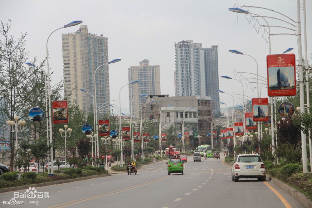 清代:清康熙三年(1664)平水西安坤。四年(1665)设分巡毕节道。于比那城置平远府,领胧胯、的都、朵你、要架4则溪地;于大方城置大定府,领法戈(化齐)、火著、木胯、架勒4则溪地;于水西城置黔西府,领以著、则窝、雄所3则溪地,隶贵宁道(后改贵西道)。裁乌撒卫置威宁府,治卫城,设威宁镇总兵,隶贵州。二十二年改黔西、平远2府为州,隶大定府。二十六年降大定府为大定州;裁毕节卫置毕节县,省赤水卫入毕节县;并永宁卫、普市千户所置永宁县。黔西、大定、平远3州及毕节、永宁二县俱隶威宁府。雍正五年(1727)划永宁县归四川。七年(1729),划赤水河北岸地入四川永宁县,析永宁县赤水河南岸入毕节;升大定州为府,降威宁府为威宁州,黔西、平远、威宁3州隶大定府;贵西道驻毕节,管辖安顺、遵义、大定、南笼(今安龙县,嘉庆二年改名兴义)四府;划威宁州后所归云南宣威,以可渡河桥为云贵省界。十一年置水城厅,驻大定府通判。光绪三十四年裁贵西道,改巡警道,移驻贵阳。