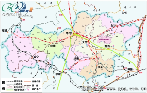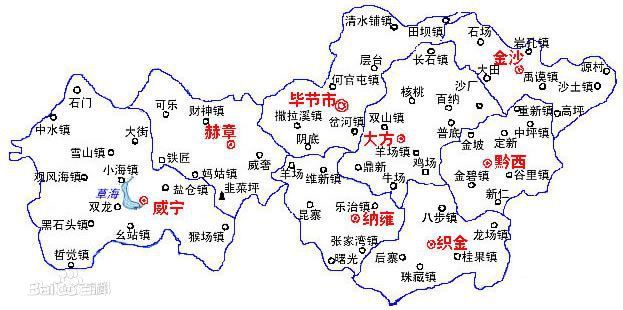 新中国成立后:1950年置毕节专区,辖毕节、大定、金沙、黔西、织金、纳雍、威宁、赫章、水城9县。1954年改威宁县为彝族回族苗族自治区。1955年改威宁彝族回族苗族自治区为彝族回族苗族自治县。1958年改大定为大方县。1966年析水城县大河等10公社置水城特区,属西南煤炭建设指挥部。1970年划水城县归六盘水地区。毕节专区改称毕节地区。辖毕节、大方、黔西、金沙、织金、纳雍、赫章7县和威宁彝族回族苗族自治县。1988年6月,经国务院批准建立毕节“开发扶贫、生态建设”试验区。1992~1993年建镇并乡撤区后,全地区撤销原县与乡之间的89个区镇建制,改原736个乡镇为250个乡(镇、办事处),其中:97个镇,147个乡,6个街道办事处。1994年毕节县撒县设市(县级),乡(镇、办事处)未作调整。1995年金沙县撤销岚头乡,设立岚头镇。至此,毕节地区辖98个镇,146个乡,6个办事处。2011年,国务院批准撤销毕节地区设立地级毕节市。毕节市设立七星关区,以原县级毕节市的行政区域为七星关区的行政区域。毕节市辖大方县、黔西县、金沙县、织金县、纳雍县、赫章县、威宁彝族回族苗族自治县和新设立的七星关区。