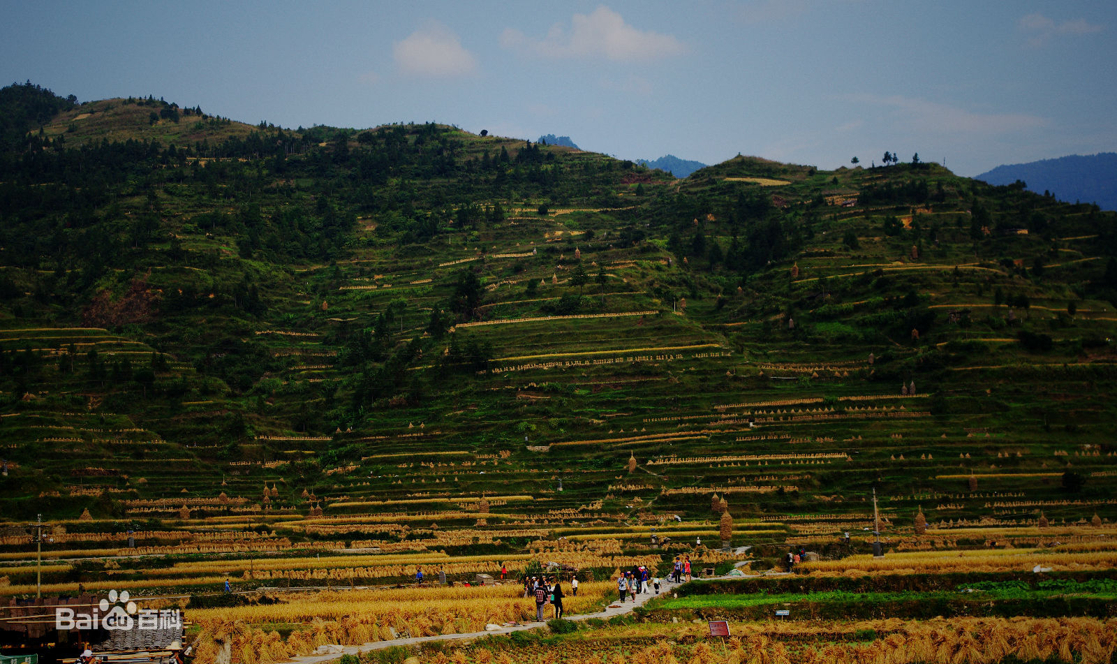 原南贵村:下辖8个村民小组,235户,899人。2005年国内生产总值159.92万元,农民人均纯收入为1458元,其中农业收入790元,劳务收入490元,旅游收入178元。现有耕地面积640亩,其中水田面积564亩,旱地76亩,农民人均占有粮食371.2kg。