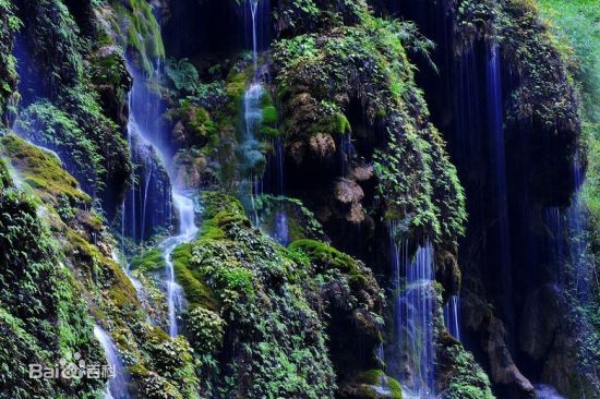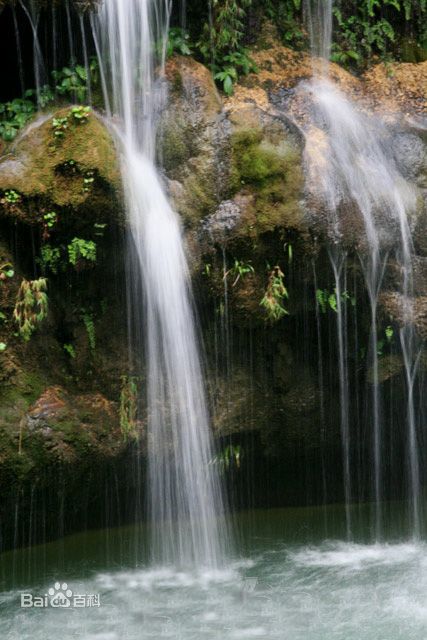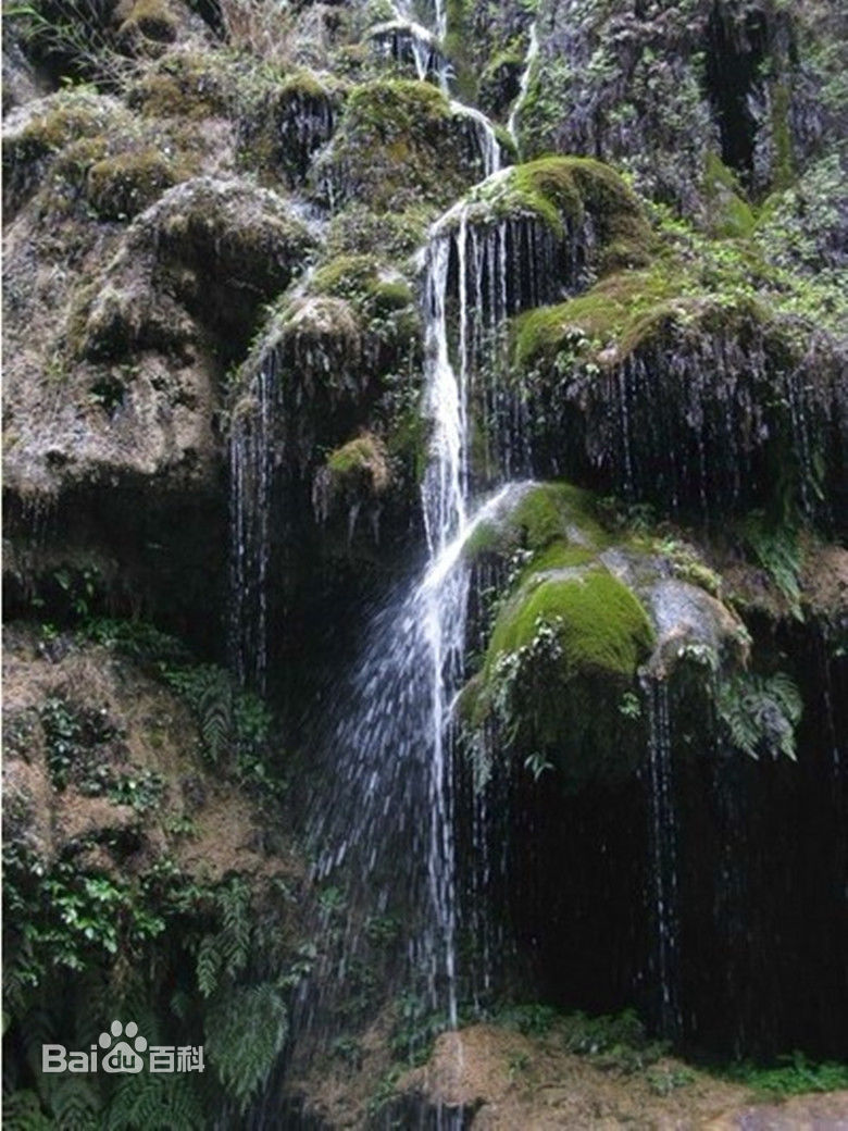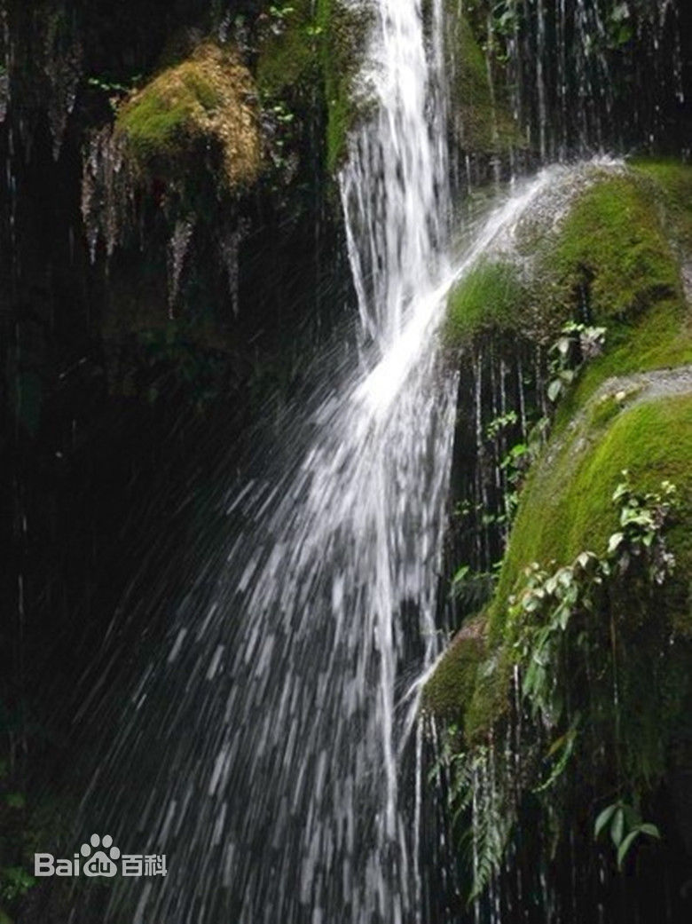 24、水帘洞瀑布:高20米,宽7米,从钙华上流下,形成水帘洞,洞深7米,内多钟乳石。