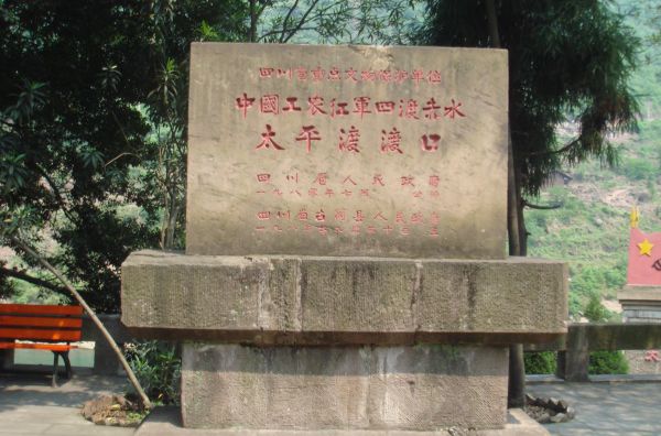 1935年1月28日,林彪赤水失利,青杠坡战斗难以推进,军委为此召开紧急会议,被迫取消了原打算经赤水从泸州至宜宾间北渡长江与四方面军会师的计划,林彪所部及时在元厚、枫溪渡河完毕,接着,中央红军也于29日晨从土城渡过赤水河,这一著名的军事行动,就是“一渡赤水”。1976年建纪念碑,高9.1米,正面阴刻毛泽东手书拼字“红军渡”三字。